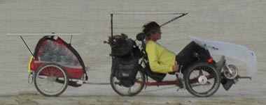 Panels can be mounted on an upright bike, but trailers and trikes are more stable platforms for carrying enough solar to climb tall mountains while carrying a load. E-bikes and e-trikes also represent technology that enables. Many human solmads, the early adapters, are technophiles, but lovers only of appropriate technology that enables.